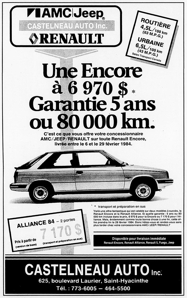 1984 - arrivée de l'Encore